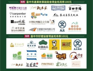 臺中好禮協會及台中市產業故事館發展協會現金折價券100元各一張,可至阿聰師芋頭文化館、丸文食品、大振豐洋傘、木匠兄妹、伊莎貝爾、張連昌薩克斯風、第四市場、臺中市眷村文物館、鞋寶觀光工廠、霧峰林家宮保第園區、寶熊漁樂碼頭、大甲麵本家、PINTRUE品醋迷、悅田食品、崧大夫、啡堡創飲、丸文食品、太平藍、津醬、巴部屋、糖園餐飲、無藏茗茶、熊介巧、蘭馨堂、松園食品、蜜友、鯊魚挑嘴等等以上店家進行兌換。