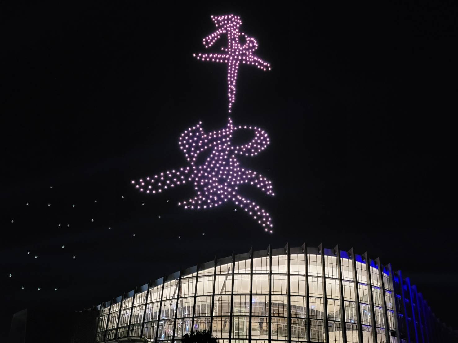 故宮南院表示,近年來無人機群飛展演獲得熱烈迴響,今年度展演共有4場,表演陣容從去年300架升級為500架,並配合人氣國寶展,在夜空中排出人氣國寶圖式。此次展演以故宮南院建築圖騰「龍」為主題,以「明 永樂 青花穿蓮龍紋天球瓶」的「龍首」為開場,以祥龍獻瑞,賜福大地。接續呈現「掐絲琺瑯番蓮紋瓶」、「玉龍紋盤」及「故宮院徽」等圖式,展演最後以王羲之「平安何如奉橘三帖」中的「平安」二字及「天燈」壓軸,代表故宮祝福大家吉祥平安。