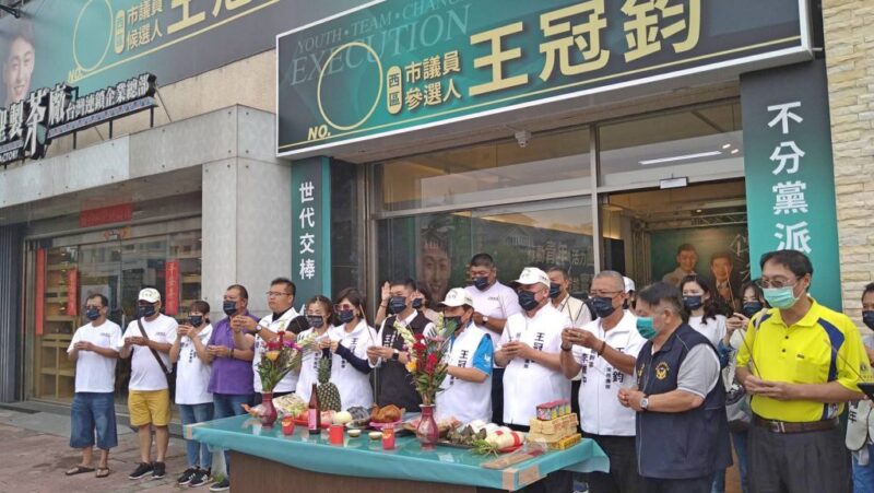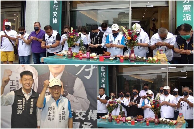 嘉義市議員參選人王冠鈞高鐵大道競選服務處15日正式啟用,議員吳上明擔任榮譽主任委員,並在競選團隊們到齊後,祭拜天地,祈求競選過程平安順利,高票當選。吳上明說,他下屆不選,直接交棒給王冠鈞,並強調年青人更有衝勁,若能成為市議員,將更有一番作為,傳承他的不分黨派、只問是非問政理念,請市民多多支持。