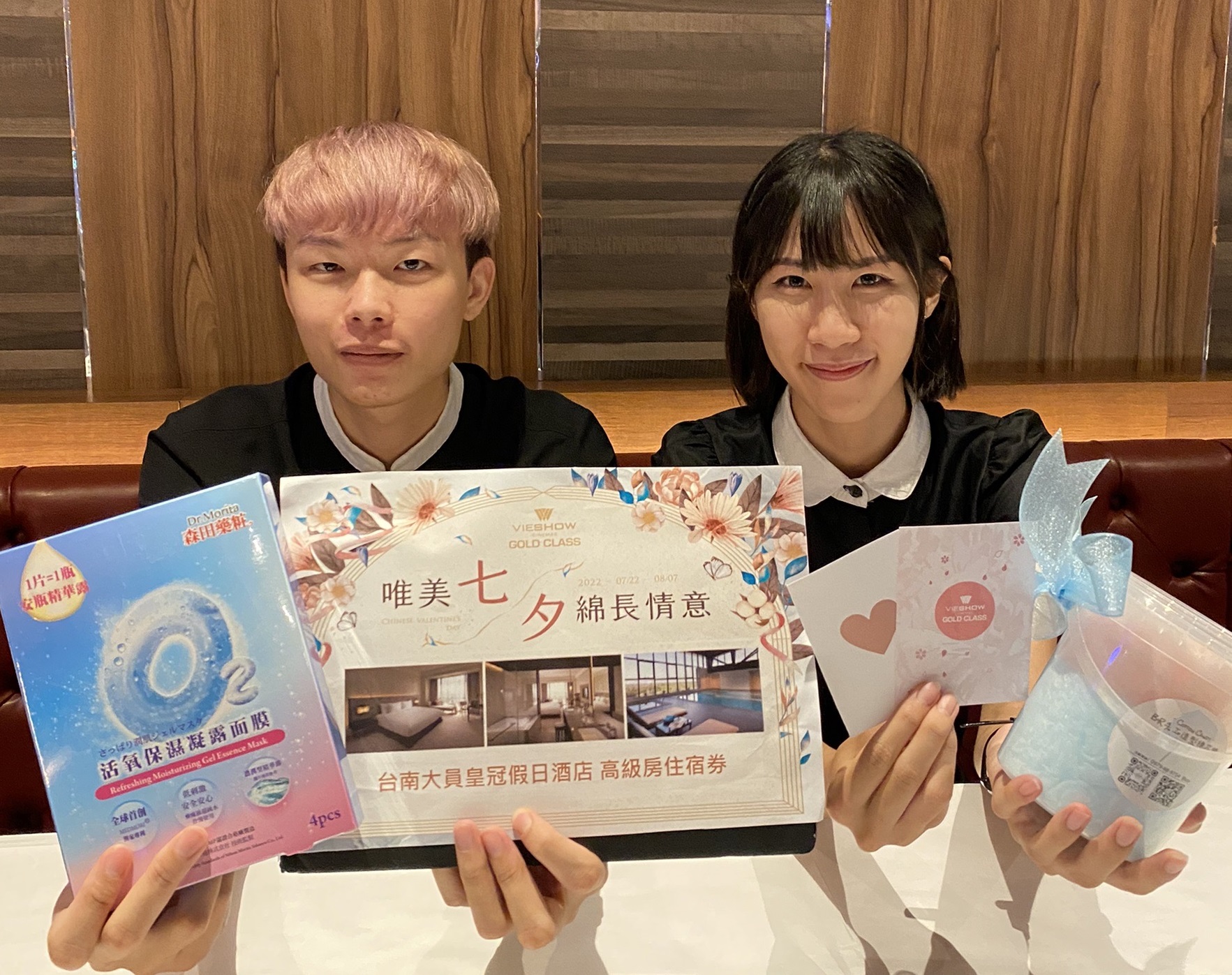 威秀影城將推出專屬GOLD CLASS頂級影廳的【唯美七夕 綿長情意】活動,07/22(五)-08/07(日)凡觀影並加購套餐,即可獲得【森田藥粧活氧保濕凝露面膜】(價值239元),07/27(三)-07/31(日)觀影還可參與甜蜜留言,威秀影城將為您傳達情話,於08/04(四)七夕全日在GOLD CLASS電視輪播放送(限10組); 08/04 (四)七夕攜伴觀影並加購套餐,前30組顧客,可獲得 「B&R手工造型綿花糖繽紛桶」&「 幸運籤刮刮卡」乙份!刮開幸運籤可預測您的愛情運勢,還有機會刮中「台南大員皇冠假日酒店高級房住宿券」 (價值13,000元),延續浪漫情意。