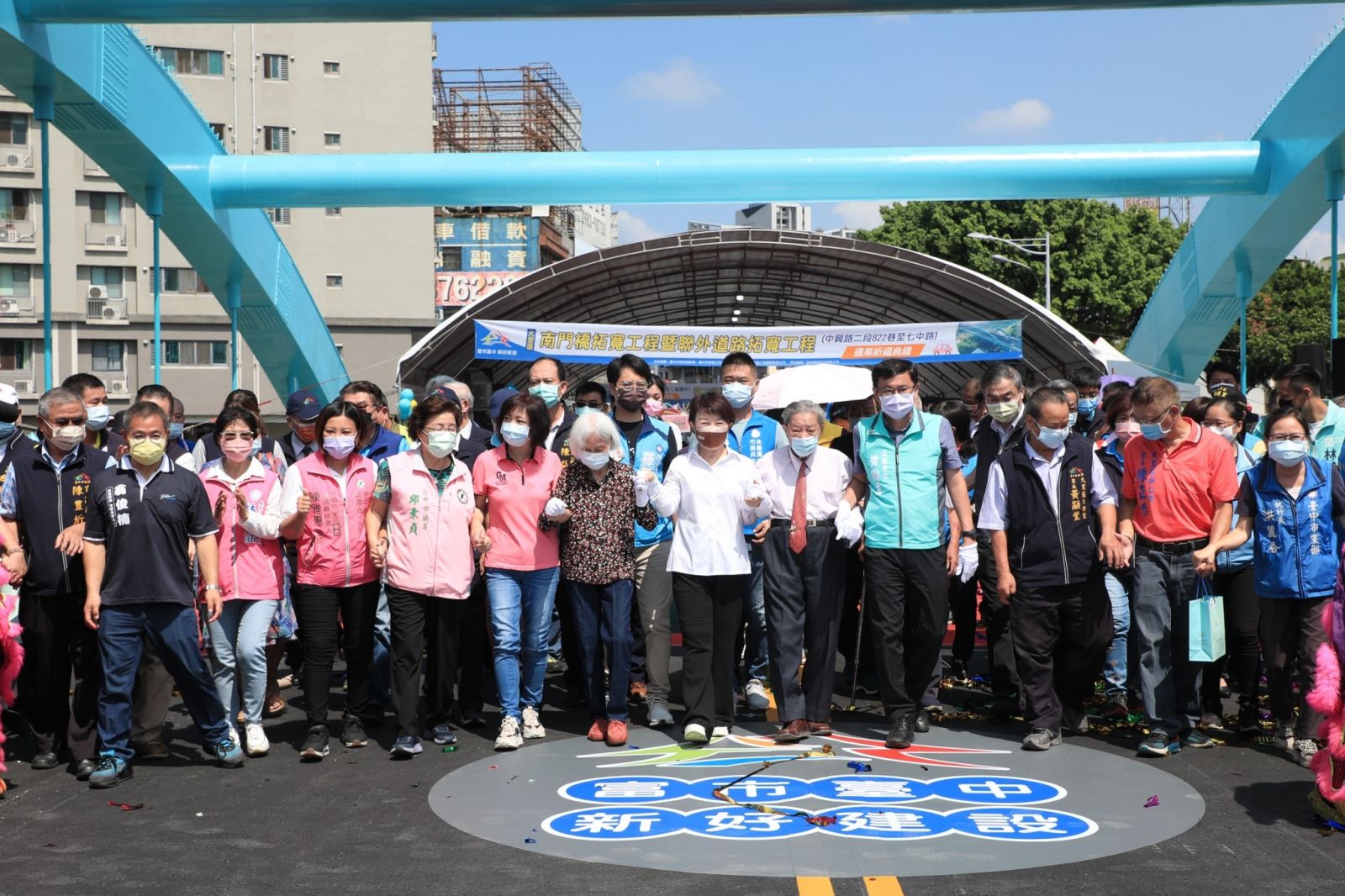 台中市政府建設局今日舉行「大里區南門橋拓寬工程暨聯外道路拓寬工程」通車祈福典禮,盧市長指出,南門橋位在大里區、東區、南區3區交界,但橋梁老舊、橋齡已逾一甲子,橋寬也僅約14.4公尺,大里往來台中市區的重要道路中興路,全長3.3公里中,全線只剩此路段不足都市計畫的20公尺寬度,常因橋面狹窄造成交通壅塞。
