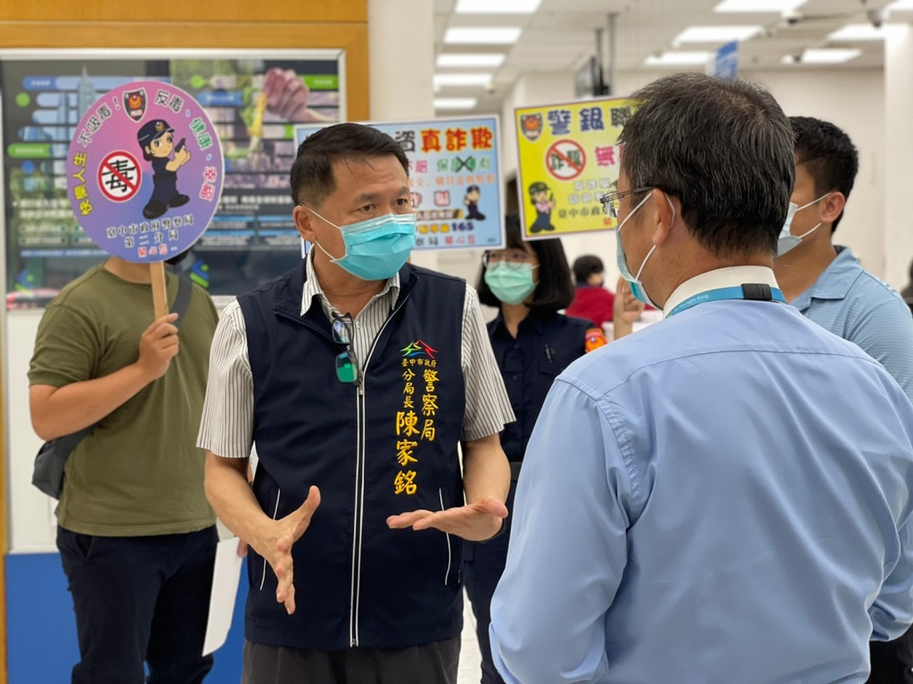 臺中市政府警察局第二分局長陳家銘特別於7月26日上午拜會銀行,向行員說明詐騙集團的常見話術,並請行員關懷提問時,觀察被害人神情是否有異?被害人與受款對象之關係及是否認識?如係投資用途,則深入詢問是進行何種投資?如投資標的為「虛擬貨幣」、「石油」、「外幣」等關鍵字,應立即通報警方深入了解,共同守護民眾荷包。