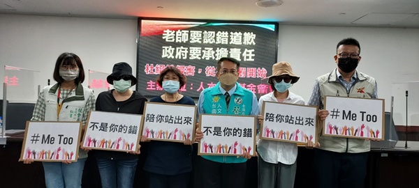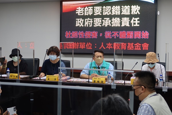【大成報記者杜忠聰/臺南報導】台南市議員蔡旺詮與人本教育基金會,27日在市議會召開記者會,為尚志剛性侵一案發聲,現場除了邀集教育局與社會局列席,並有二位受害者勇敢現身控訴,同時也播放知名藝人隋棠聲援錄音,共同呼籲,「杜絕性侵害,勇敢站出來」。