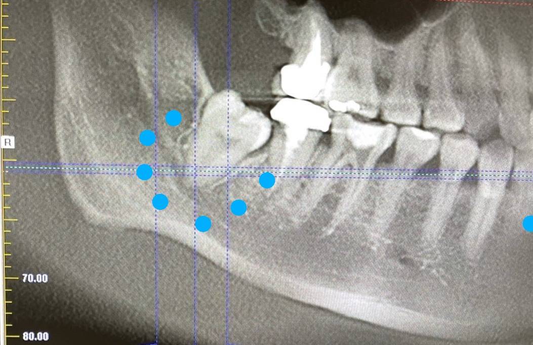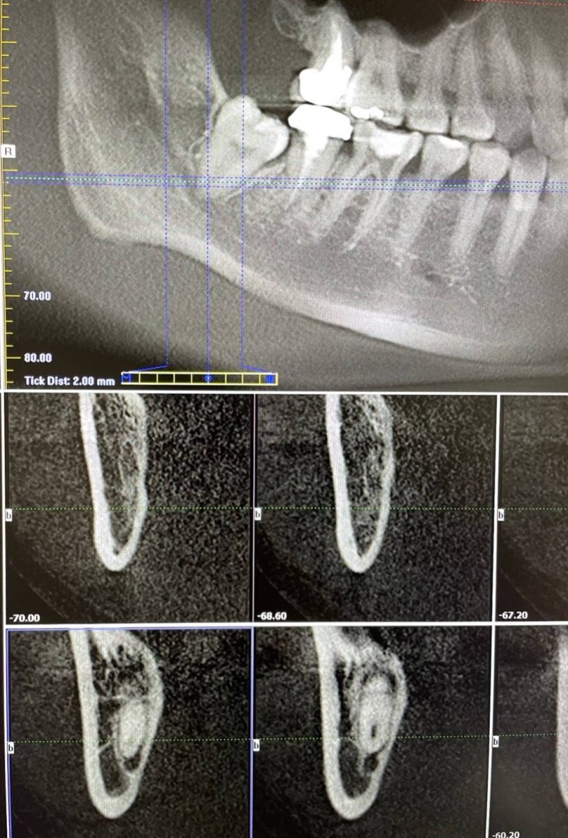 智齒長歪壓迫下齒槽神經管,導致王小姐右下巴臉頰、嘴唇周圍的麻痺及疼痛感。圖:聖保祿醫院提供