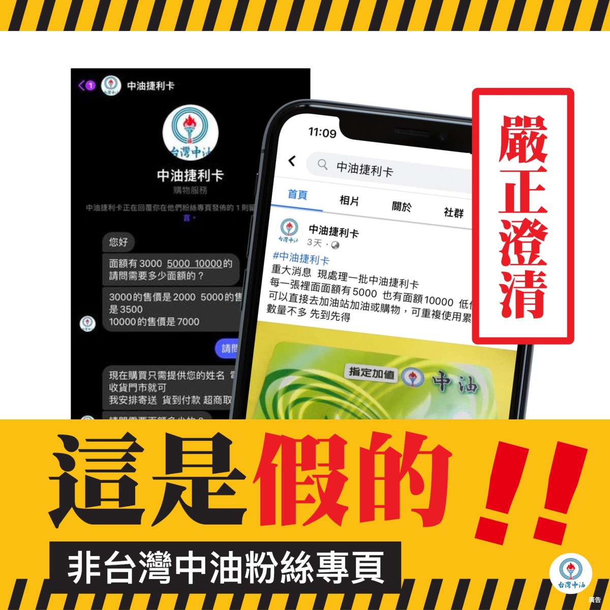 中油指出,該臉書粉專盜用中油商標圖檔作為粉絲專頁頭像,中油已報警處理。中油強調,請消費者不要購買來路不明之物品,中油捷利卡販售地點可至中油官網查詢。