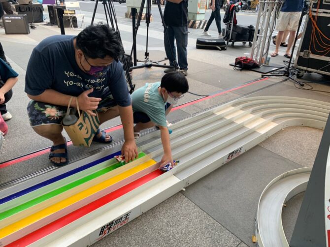 上週六(8/6)在樹林秀泰生活廣場戶外一樓舉辦的「展翼迷你四驅車競賽」,統神帶著晨晨到場挑戰,現場設有五軌賽車跑道,不僅勾起大人回憶殺,同時引領孩子們認真投入,積極規劃比賽戰術策略,不難想像當年四驅車賽事在中小學生間的熱門盛況。打著志在參加不在得獎的旗號,最終統神父子並未能奪得萬元獎項,而統神夫婦費時3小時DIY組裝的四驅車,中途也鬧出「一開跑就跑不動」的樂事,讓現場多一份歡愉氣氛。