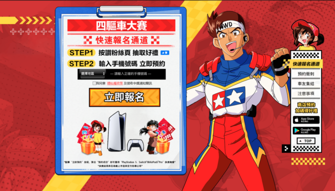 你還記得用漆包線改馬達的童年嗎? 那些年不吃早餐也要省錢改車的堅持,現在你也能在手機上重回賽道! 現在就上網參與預約活動,不僅有機會抽中 PS5、Switch 等多項大獎,商店預約還能加碼得好禮,邀請好友累積再送遊戲金幣與my Card點數卡。追求刺激與冠軍的精神持續燃燒,選手們 Let’s & Go!!