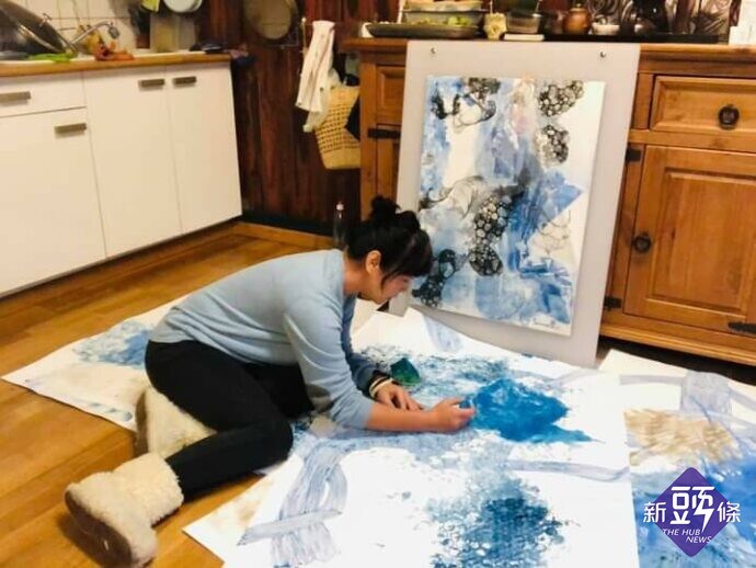 明年解封前進竹東辦畫展前,她在外雙溪住家山路前,行禪放輕鬆,提起、往上、往前、放下,眼睛自然下垂看前方1米處,雙手相握放在走,按著心念緩慢移動,覺察環境、看到、聽到、聞到⋯⋯。用心對待,叫得出一草一木的名字,晨曦夕照都來打個照面,互相陪伴。