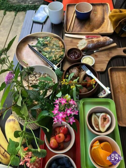 池上鳳珠也繪製瓷盤,擺盤技巧讓防疫生活的餐桌更美麗。外雙溪的山邊水涯,信手拈來就是當下的驚艷,儀式感回歸於生活的實踐,她靜心體察四季變化,碗盤錯落的讓顏色紋樣明暗深淺有層次,再為餐桌插ㄧ瓶花,感受四季變化。