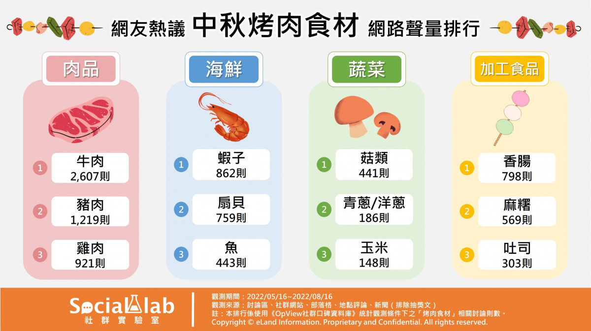 《Social Lab社群實驗室》本次透過《OpView社群口碑資料庫》追蹤近三個月內「烤肉食材」話題的網路聲量表現,帶您了解有關網友熱議的中秋烤肉熱門食材排行。