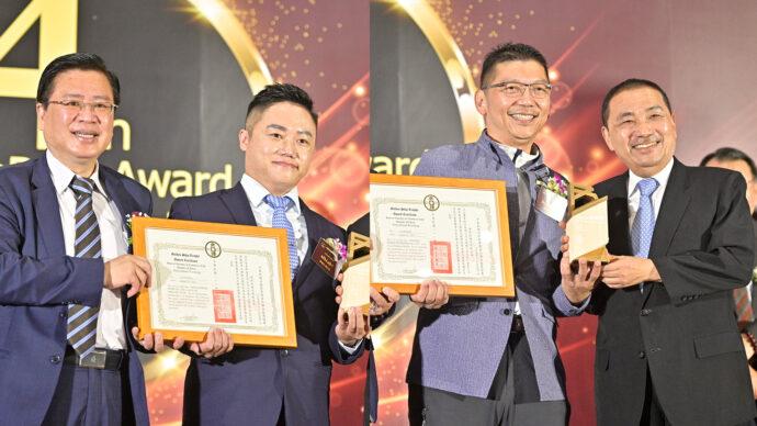▲國際授權代理輸出組得獎廠商:佳承智慧科技有限公司執行長林羽良(左)、品元實業股份有限公司董事長曾仁佑(右)。(圖/全國商業總會提供)