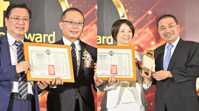 ▲國際授權代理輸出組得獎廠商:新旺生醫股份有限公司 李冬齡副總經理(左)、漢翊食品有限公司 李冠勳總經理(右)。(圖/全國商業總會提供)