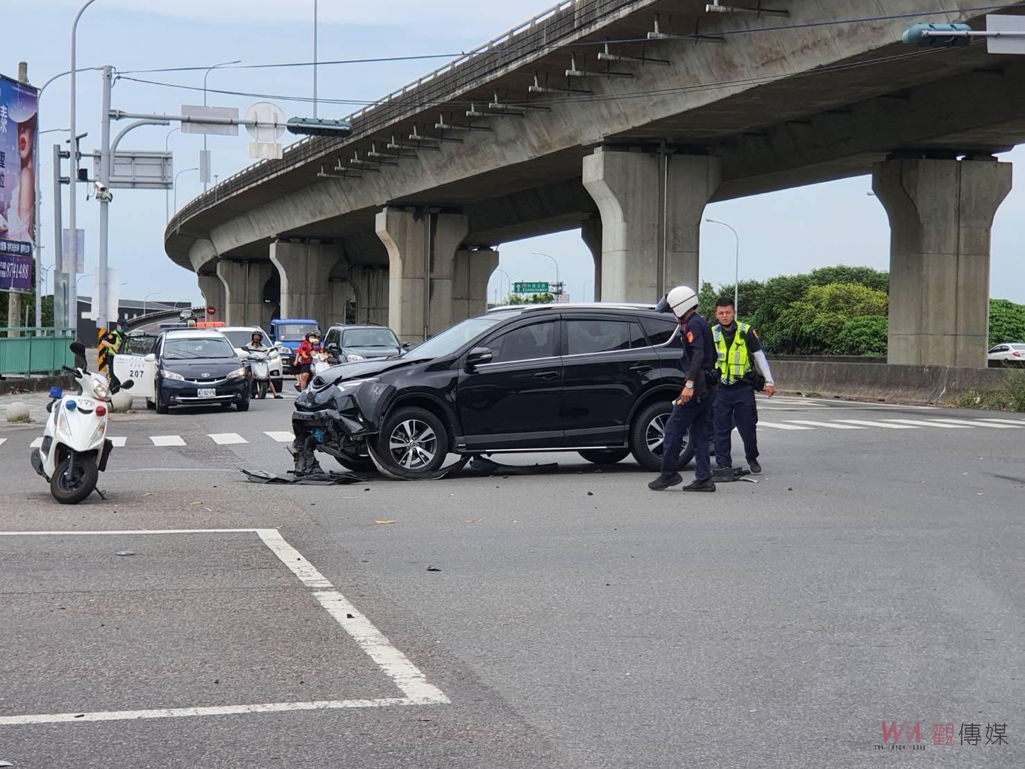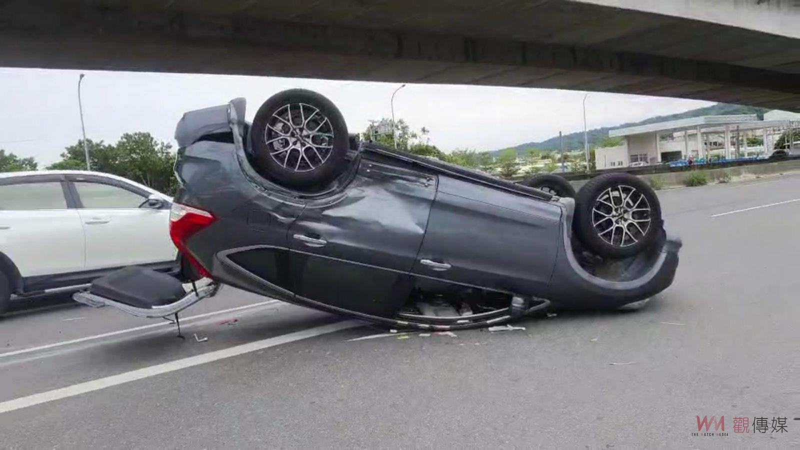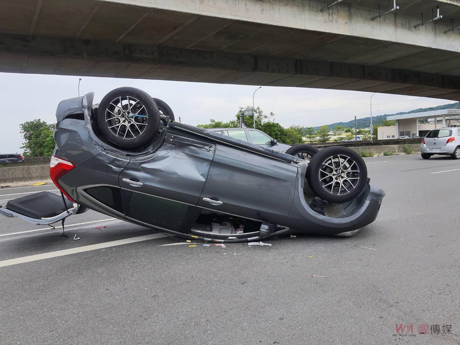 ▲台76線林厝交流道下方道路2休旅車碰撞!1輛四輪朝天一輕傷。