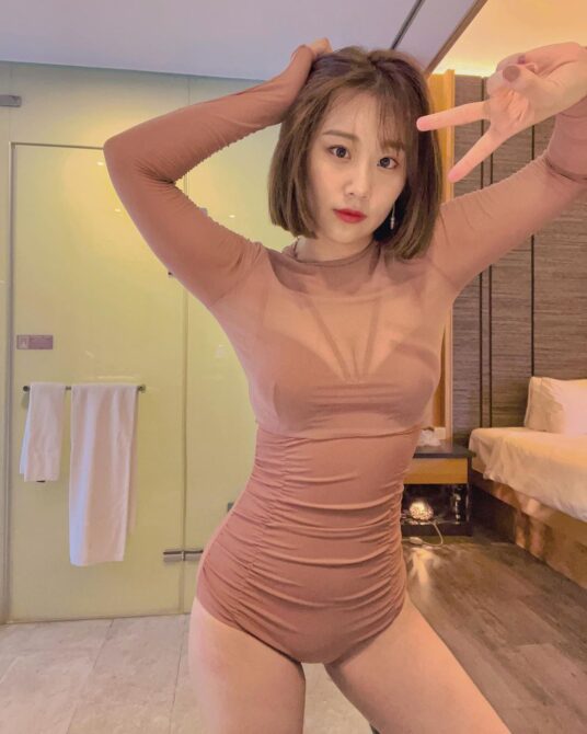 照片中,焦凡凡身穿著偶粉色的連身泳裝,襯托她白皙的膚色與豐滿的上圍,儘管上岸後套上透膚的罩衫,若隱若現更顯性感,也凸顯她穠纖合度的大長腿,另一套中空裝,貼身的短版上衣也讓她的好身材也一覽無遺。