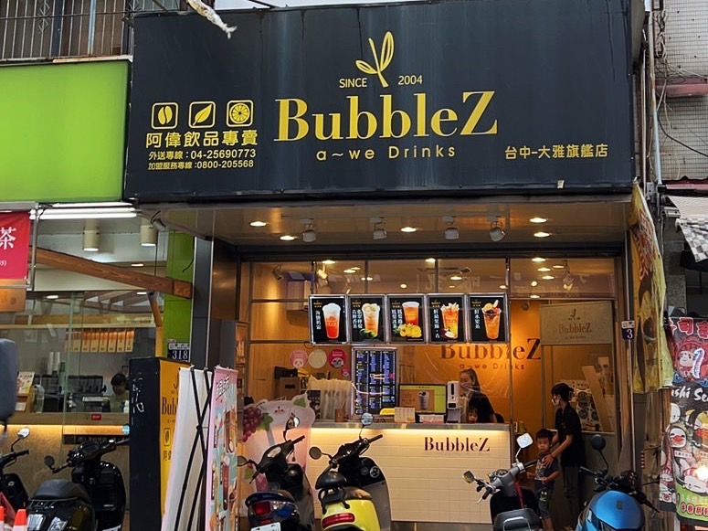 而在當時,王中聖原先其實是住在台中北屯,不過經過總部分析後,認為大雅學府路因鄰近雅潭夜市,周邊又有在地工廠、住家,外圍車流量也大,前後100公尺可說是大雅區域的精華地段,因此就決定讓他在學府路上開設「BubbleZ 阿偉飲品專賣店」首間加盟分店「BubbleZ 阿偉飲品專賣店-聖翔飲品專賣店」,就這樣一做就是13年,而自己人生包含結婚、生子、買房等重大事件,也都在自己開店當老闆之後經歷。