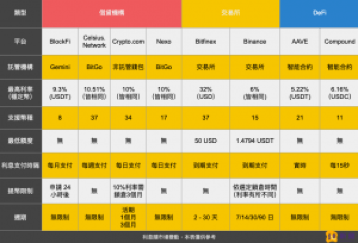 從流動性挖礦崛起到衰落,根據 Defi Pulse 數據,儘管借貸協議 Compound 仍鎖定 12 億美金排名第四,目前的 DeFi 借貸平台利率普遍不如中心化借貸平台以及交易所的定存產品。特別是 Celsius.Network 以及 Crypto.com 在配合平台幣後,利率遠高於 DeFi 借貸平台所能給的收益。