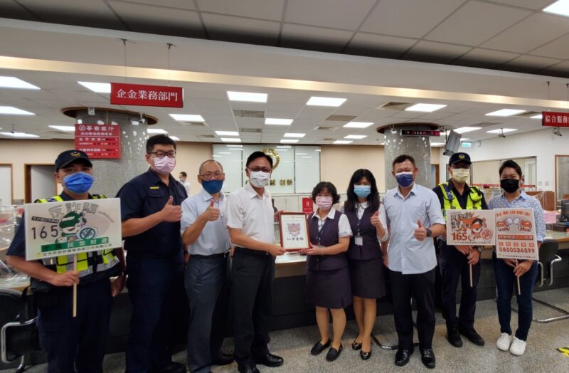 《圖說》臺中市警三分局執行「警銀聯阻防詐」計畫,與金融機構行員建立即時聯繫管道,經統計從今年一月份迄今已攔詐廿七起,攔阻金額二千萬餘元,成效斐然,九月八日警察局副局長鄧學鑫率分局長楊川等人親訪華南銀行南台中分行,致贈感謝狀、伴手禮等,以感謝行員們對打詐阻騙的協助;偵查隊長李振成指出,華南銀行南台中分行對警銀聯阻防詐不遺餘力,單單在八月下旬就成功阻詐近一百廿萬元,今年度共成功阻詐五起,對社會治安貢獻良多。(焦點時報/記者許順德翻攝)