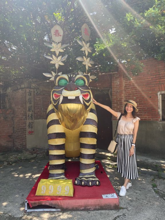 內有很大的停車場,如果從停車場那端進入古厝,會先看到一個虎型大花燈。