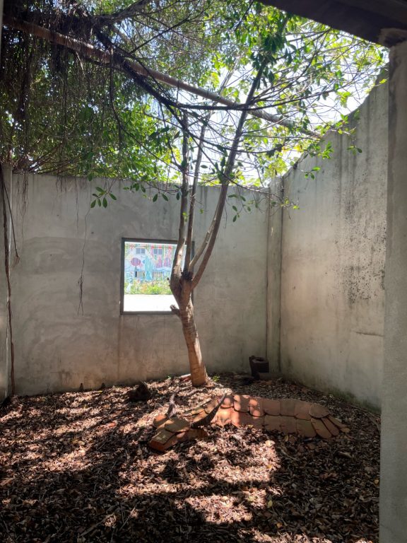 古厝裡,處處都有文學或是藝術伏筆,像這裡以綠意大樹當屋頂,像是一隻水牛藏在落葉堆裡。