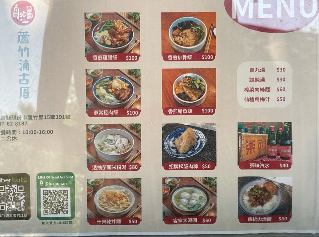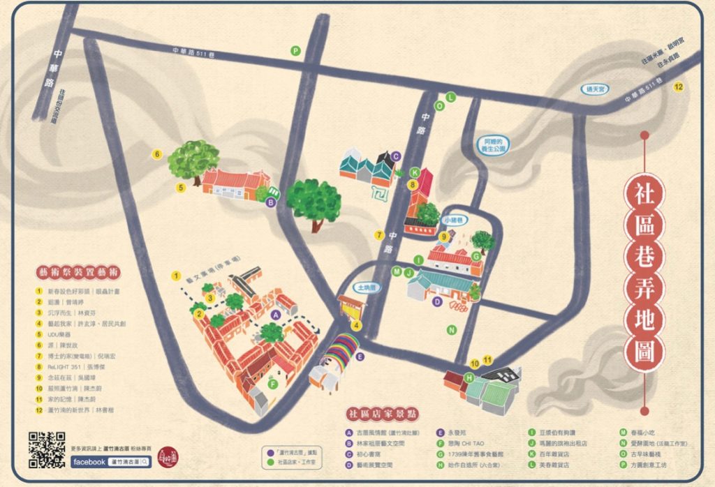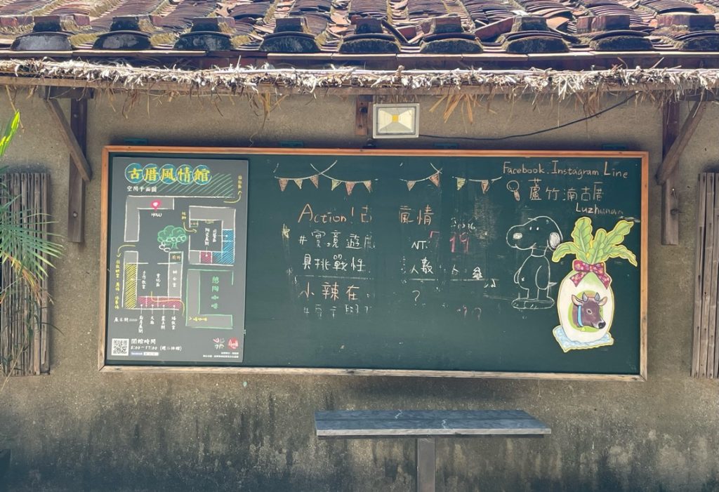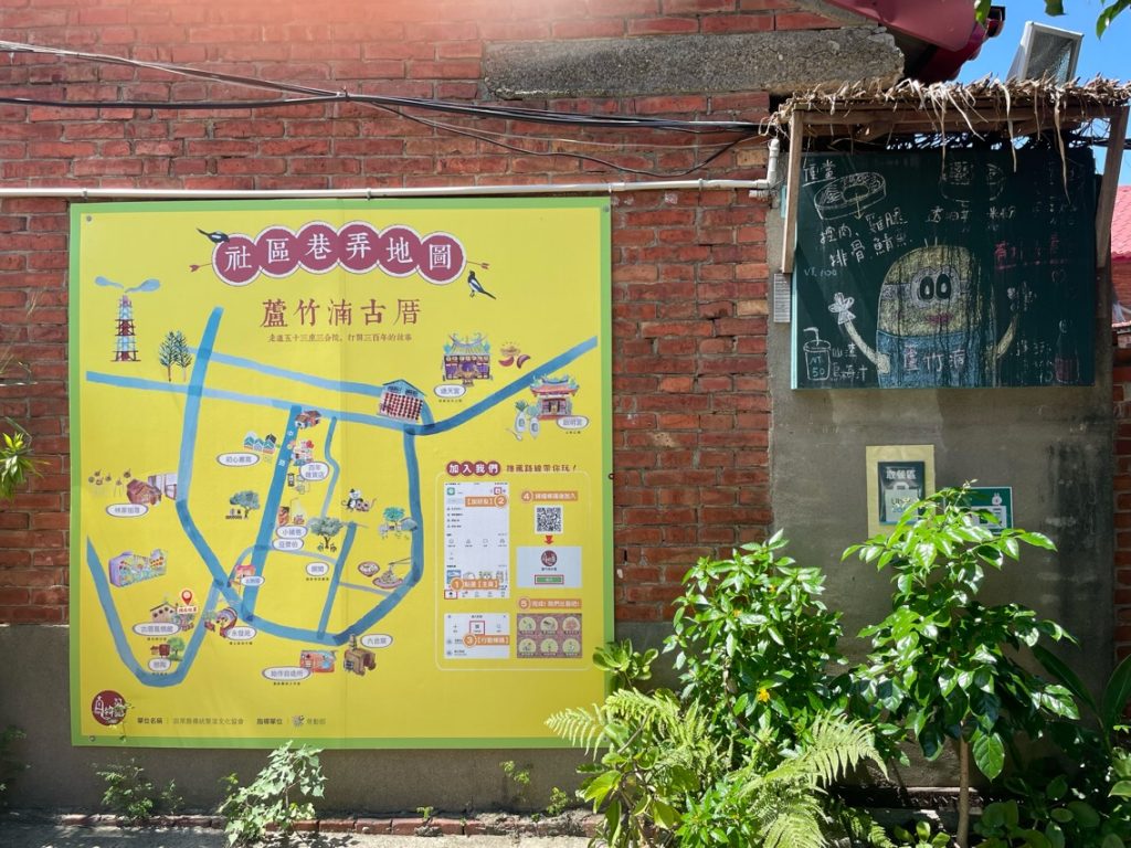 在古厝裡距離停車場不遠,會看到一個提供飲食的【蘆竹湳灶腳】,旁邊有一些介紹的DM紙本可以取用,牆上也有掛上社區巷弄地圖,讓這塊古厝區可以更清楚方向,才不會迷路!