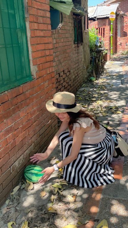 古厝的小角落處處都有彩繪小西瓜造型的石頭,原來這裡以前都是西瓜田。