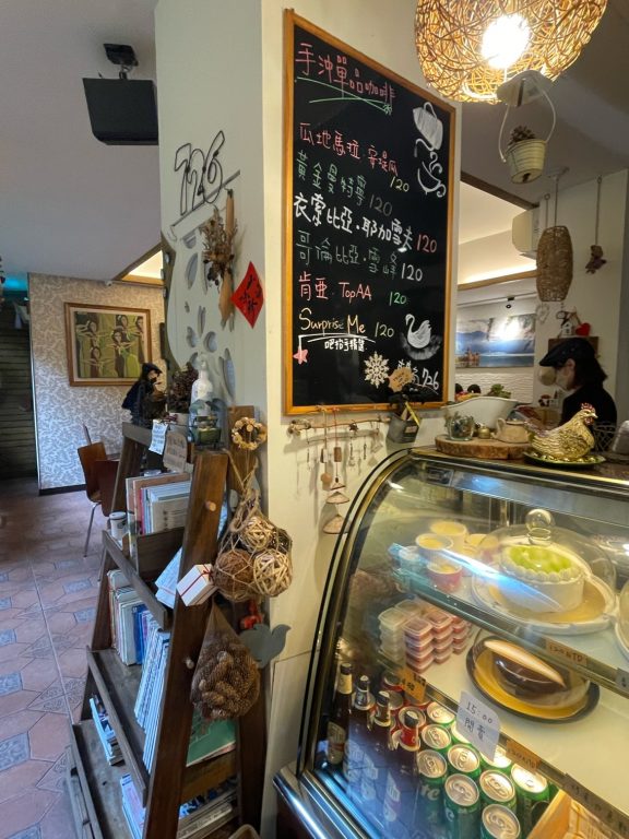 牆上的小黑板,寫著招牌手沖單品咖啡!