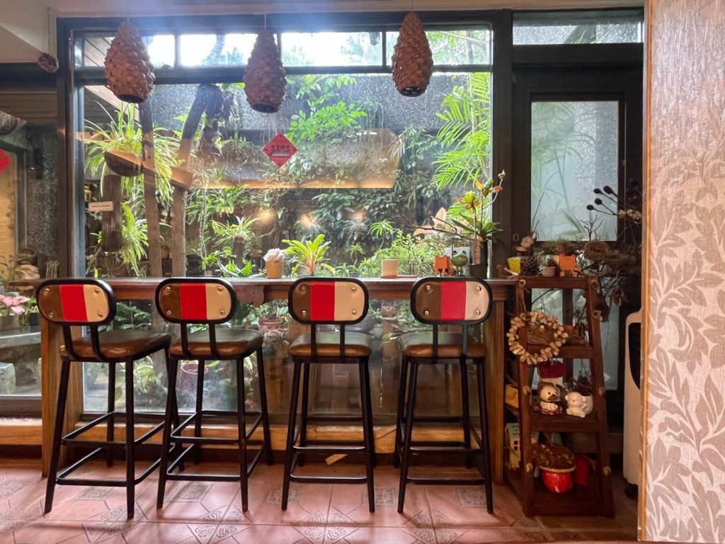 這裡有一區可以面對戶外小院子,美麗又詩意的綠色植栽盡入眼簾。