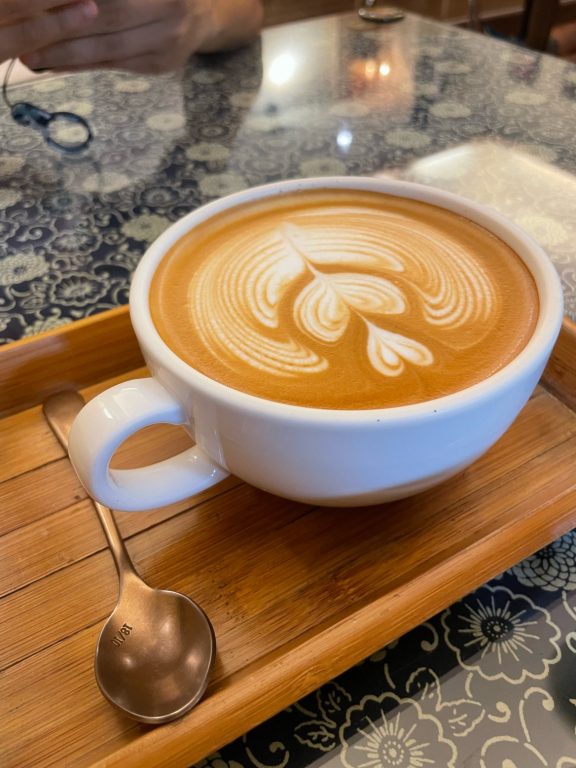 拉花很美的拿鐵,風味也很濃醇,裝在小圓杯中搭配古典木盤,很有歐式下午茶的閒適感。