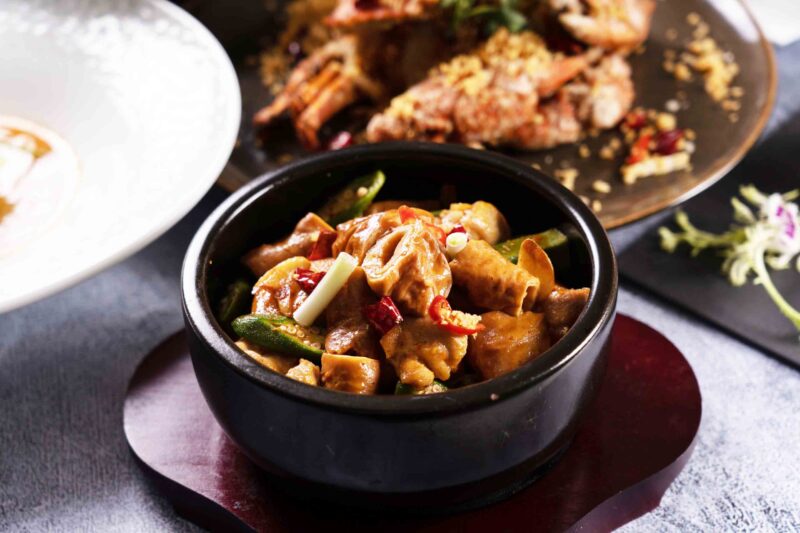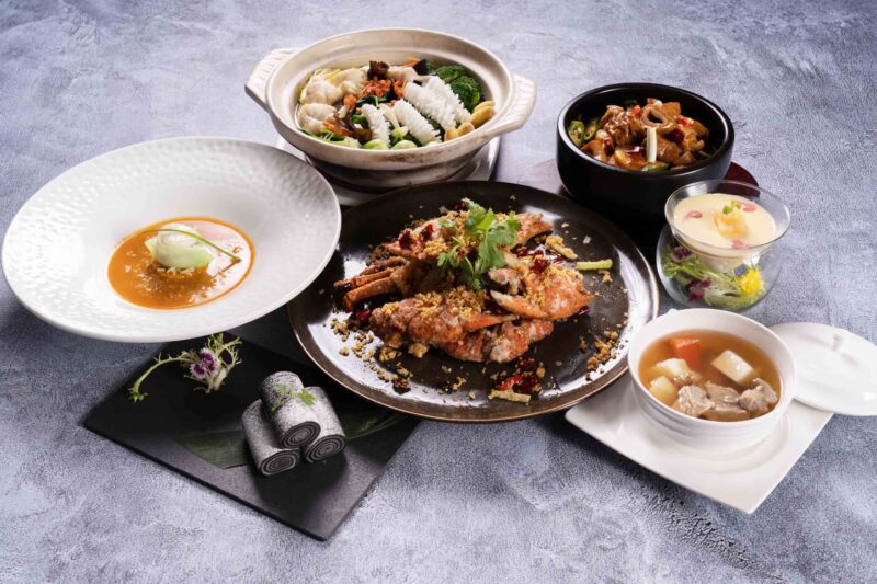 曾任職米其林餐廳的中餐廳行政總主廚林凱與團隊再度展現精湛廚藝,推出「金秋賞味‧粵饌經典」秋季限定菜單,最吸引饕客的莫過於極品沙公料理,主廚林凱表示,秋冬時節的沙公最肥美,特別挑選約500公克的沙公,並且分別以傳統經典避風塘料理、花雕清蒸、及砂鍋煲湯三種作法,香辣、原味、濃郁各具風味,每份1,180元。除此之外,進入微涼的季節,來點熱呼呼的湯品很舒心,主廚準備「螺頭白玉炖軟骨排」及「錦繡什錦煲」為客人暖胃,「螺頭白玉炖軟骨排」每份148元,是以乾螺、台灣山藥熬製的湯頭,甘甜味美,而匯集了龍膽石斑魚、中卷、多樣蔬食做成的「錦繡什菜煲」,湯頭清爽回甘,4-6人份只要580元,具高CP值。喜歡吃辣的首選「麻辣肥腸雞肉煲」,主廚特調辣醬麻中帶辣、很是過癮;港點有「龍蝦湯脆米玉帶餃」,每粒128元,鮮活龍蝦熬製的湯底,干貝為主體的餃子,加上炸過的脆米,富多層次又豪華的一道菜;「羊城黑芝麻捲」為相當費工的一道甜點,需要掌握每道工序的時間,才能做出Q彈口感,還有黑芝麻汁與椰汁的雙層香氣,每份108元(3粒)。秋季限定菜自9月16日起至12月15日止,訂位專線:(07)656-8166轉21402皇樓中餐廳。