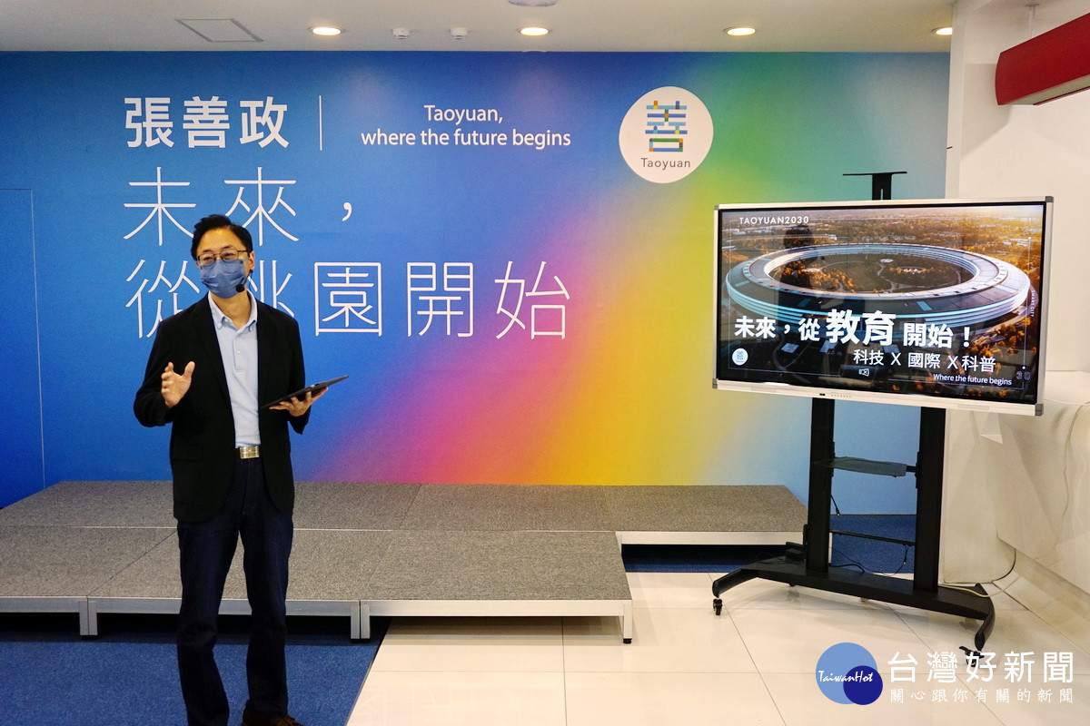 國民黨桃園市長候選人張善政16日發布桃園教育政策,舉行「桃園2030:未來從教育開始」說明記者會,強調「桃園2030」的願景包含智慧環境、智慧交通、智慧生活等各個面向,第一波公布的就是國之根本「教育」,當選後將立刻推動「數位創新課程普及化」,讓桃園的國小、國中、高中都增加相關課程,訓練程式語言能力。另外,也要以市府的角色,舉辦「桃園國際科技Summer School」及夏令營,邀請矽谷新創科技業如Facebook、Google、Apple的主管,在每年寒暑假到桃園參與課程教學,讓每個桃園的家庭、每個桃園的孩子,都有接觸國際教育的機會。