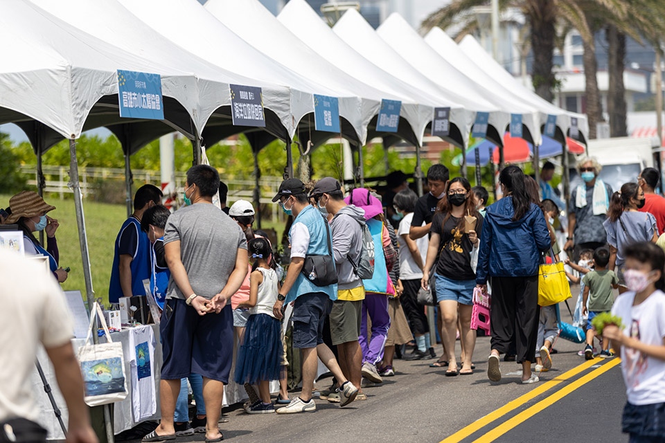 本次友善海洋市集共邀請13個品牌設攤,包含自然手作、小食飲物、愛心公益品牌,和前來淨灘、寫生的民眾一同分享歡樂的氣氛。精心設計的互動式闖關遊戲,為響應環保,關卡道具皆使用可回收再利用素材製作,並復刻趣味童玩,像是寶特瓶劍玉、光碟彈珠平衡板等,搭配生動的故事描述,倡導海洋保育意識,達到寓教於樂的目的。其中一個關卡更邀請到高雄師範大學科學教育暨環境教育研究所黃琴扉副教授研究團隊,透過與海洋國家公園管理處合作研發的濱海植物拼圖,帶領小朋友認識更多不一樣的植物。