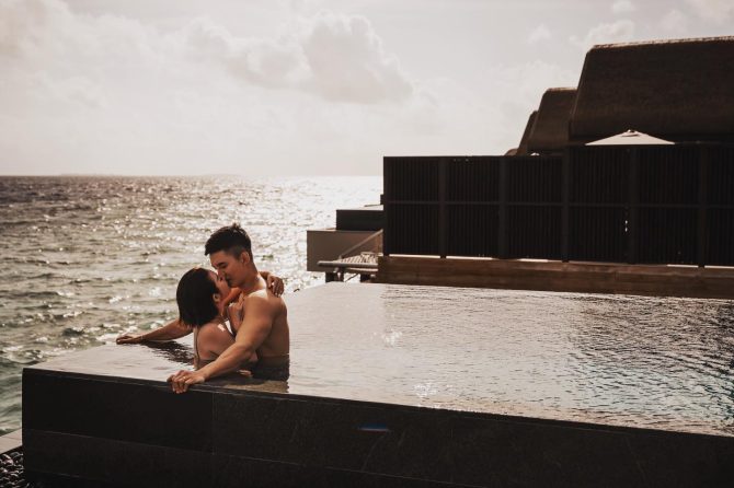 許維恩日前與老公王家梁到馬爾地夫度蜜月,曬出一系列甜蜜放閃照,返台後卻不幸感染新冠肺炎,目前在家隔離休養中。而她也趁著隔離期間,翻出12年前她所拍攝的火辣寫真照,還俏皮地問網友:「你喜歡嗎?不保守的照片來了。」照片中,只見她僅穿了黑色性感的蕾絲內衣入鏡,窈窕的身材曲線呈現完美S型,再加上她撫媚的表情相當誘人。