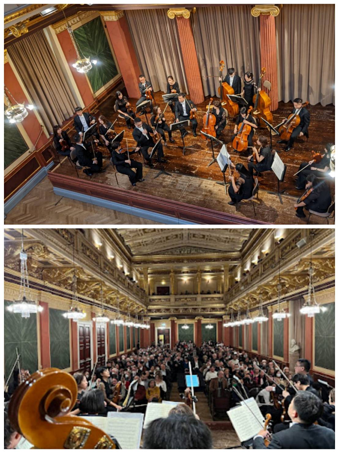 【大成報記者蕭宇廷/臺中報導】國立臺灣交響樂團9月22日以20人編制弦樂團,成功站上歐陸舞台,在人稱「維也納金廳小廳」(Kleiner Musikvereinssaal)的維也納音樂協會布拉姆斯廳Vienna Musikverein Brahms-Saal,演出「聽見臺灣」Listening to Taiwan—2022 National Taiwan Symphony Orchestra Europe tour concert音樂會,特邀請享譽國際的臺灣小提琴家陳慕融Robert Chen擔任主奏,音樂廳座無虛席,以莫札特、舒伯特等古典經典名作及臺灣作曲家陳士惠、陳樹熙、張菁珊的二元作品,征服音樂之都維也納樂迷的耳朵、獲滿堂喝采,為樂團寫下重要的一頁。
