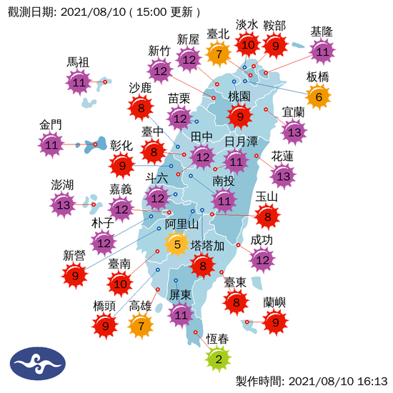 夏季時節,日頭赤炎炎,根據中央氣象局紫外線觀測資訊,今日在全台多處都達到紫外線指數的「危險級」,民眾出門在外除了要多補充水分、穿著涼爽透氣的衣物以避免熱傷害之外,更要記得做好防曬措施!