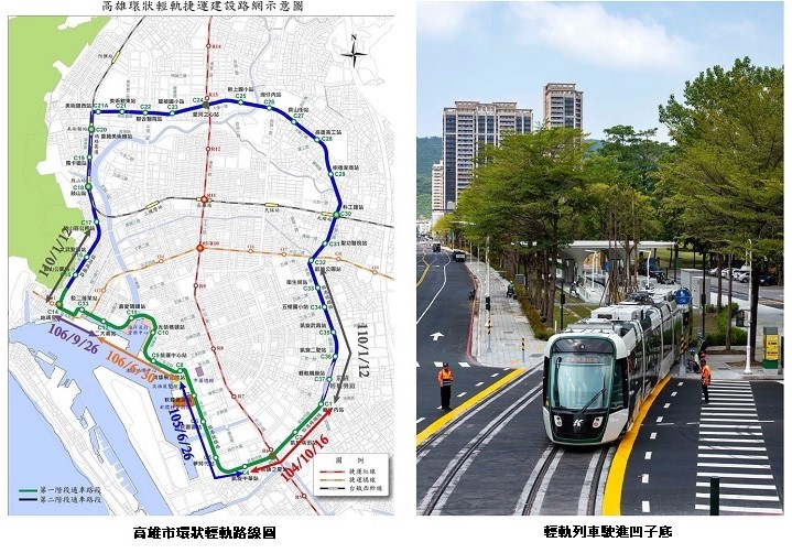 高雄市環狀輕軌捷運計劃是高雄市政府為了構築與捷運紅,橘線聯結的主要軌道運輸路網, 總共設置38站,全長22.1公里,預算165.37億台幣,原預計民國108年完成,後因部分路段沿線居民提出不同意見,協調費時而暫停施工一段時間,而往後展延。但其第一階段自民國102年1月30日開始實施,包含興建前鎮區C1(籬仔內)站起至C14(哈瑪星)站,巳於民國106年9月26日完成通車,接續逐段興工,至今(111)年9月25日C20-C24站已完成履勘,並於10月5日下午三時由陳其邁市長主持啓運典禮並試乘,同時自5日下午五時起至12月18日C21A至C24站開放市民免費搭乘。另剩下最後一段待興建的C 24-C32站, 高雄市政府捷運局即將卯足全力繼續施工,如順利的話,明(112)年底將可完成,屆時輕軌路網環繞全市,串連台鐡、高鐡、捷運、公車等運輸工具,高雄交通暢行無阻,何其方便。