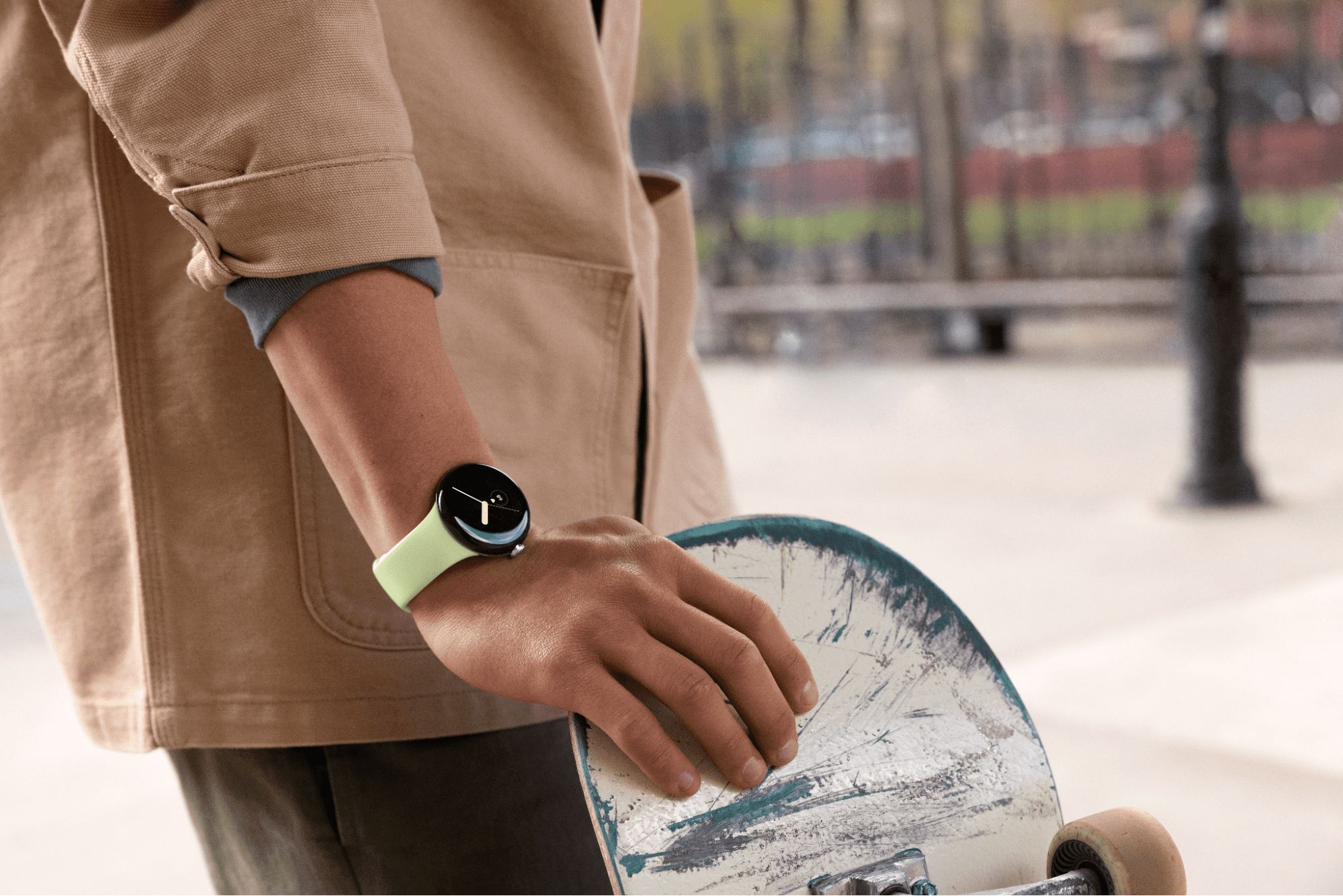Google Pixel Watch 為 Pixel 產品系列旗下首款智慧手錶,使用抗刮保護玻璃並擁有抗水等級 5 ATM,搭配能夠持續整天的電池續航。