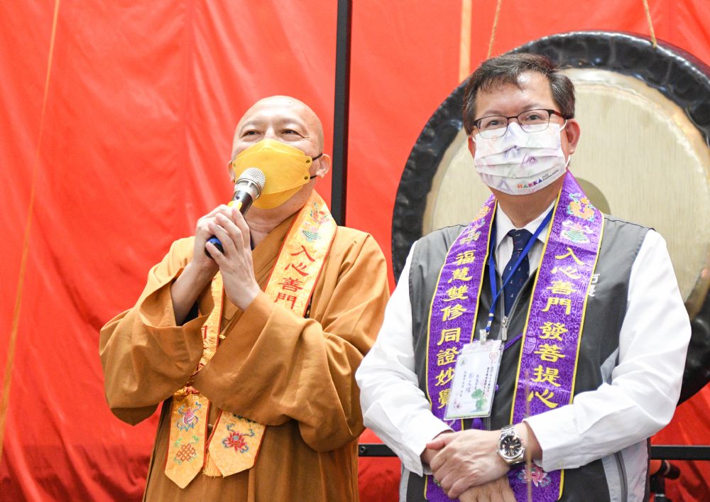 桃園市長鄭文燦今(14)日上午前往新屋區,出席「心善寺暨妙覺佛教空中大學啟建千手觀音菩蕯及諸聖像安座開光大典」。鄭文燦表示,心善寺創建於85年,歷經補辦寺廟登記、宗教用地等程序,今日的千手觀音菩蕯及諸聖像安座開光大典,代表著住持與所有法師、信眾努力的成果,也期盼藉由佛陀的智慧,讓更多人獲得心靈的淨化與提升。