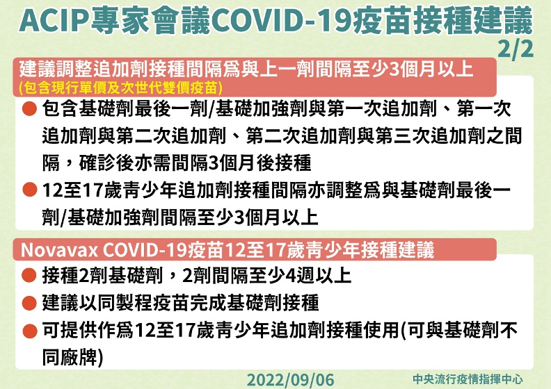 跟隨國際趨勢,10月過後國門有機會大開,不少專家預言,疫情有可能在年底大流行,所幸台灣訂購的莫德納次世代雙價疫苗已經抵台,9月24日起提供第一階段對象作為追加劑接種,包含65歲以上長者、長照機構住民、18歲以上免疫不全及免疫力低下者,追加劑與前一劑接種間隔至少3個月以上,民眾可依需求依照接種期程,選擇劑別接種。
