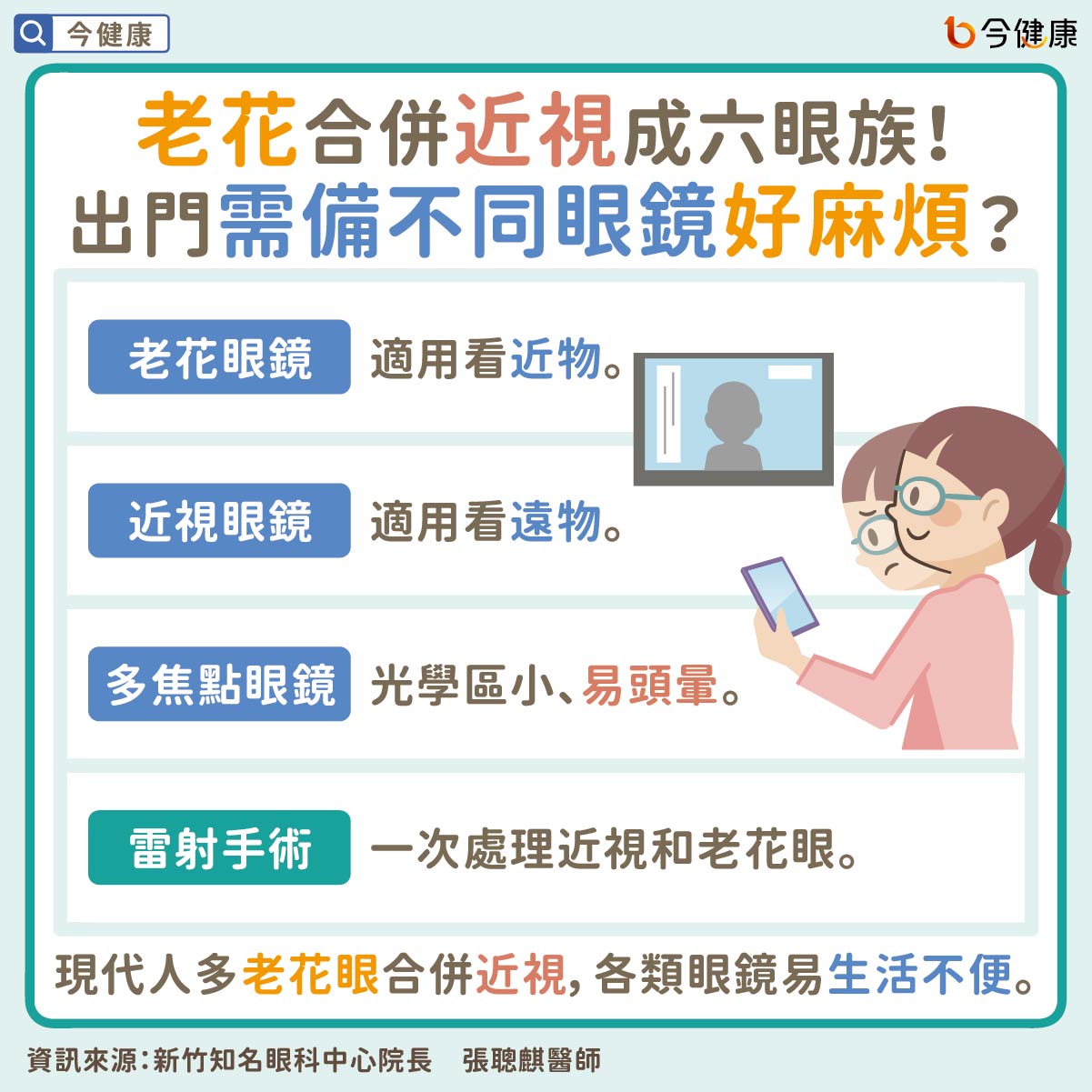 老花合併近視成六眼族!出門需備不同眼鏡好麻煩?