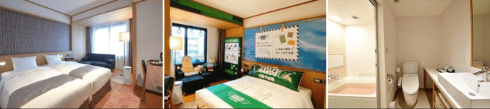 共248間客房,面積25m2。並引進「獨立型浴室」,2人入住亦十分寬敞。除此之外,還有與日本、台灣企業合作打造相當具備樂趣的多樣主題房。