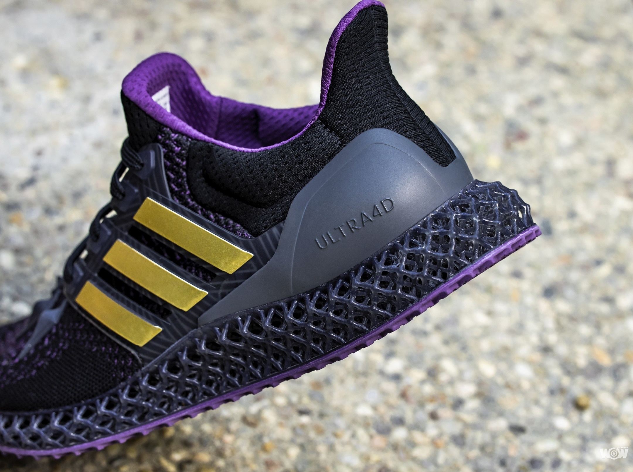 adidas ULTRA 4D以Ultraboost的經典版型、品牌獨家的3D 列印 4D 中底和橡膠大底打造,在每個步伐間提供支撐力。ULTRA 4D整體設計向黑豹的經典標誌致敬,黑、紫色調完美融入科技感十足的鞋身,並在鞋側的三線及鞋舌部分以質感的金屬光澤呈現,象徵瓦干達未來世界的先進科技。鞋款最大的特色在於鞋面上致敬黑豹豹爪項鍊的菱形元素,搭配帶來包覆、柔軟的PRIMEKNIT針織鞋面,並搭載 adidas領先的4D 科技中底,對Marvel影迷來說,絕對是必須珍藏的一款跑鞋。