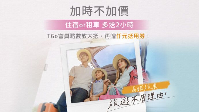 ●「加時不加價」:高鐵來回車票+住宿或租車多送兩小時