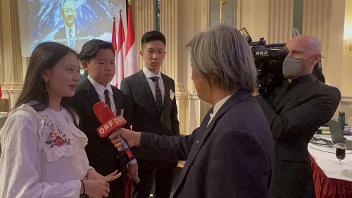 下圖:VIS國際實驗高中學生 劉家穎、蔡宗霖、王允中接受奧地利ORF電視新聞台專訪
