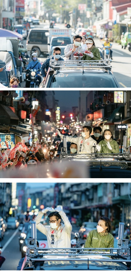 傍晚車隊進入旗山中山路媽祖廟後方的旗山老街時,除了沿街滿滿人潮夾道歡迎,經過旗山農會前,可以看到農會二樓的陽台也擠滿了支持者,旗海飄揚歡呼聲不斷,鞭炮煙火交織宛如盛大嘉年華,讓大家看到了陳其邁的超人氣還有大旗美地區民眾的熱情,就有網友看到旗山老街前洶湧的人潮,驚呼留言「旗山人太熱情了。」「這個人潮也太狂了!」