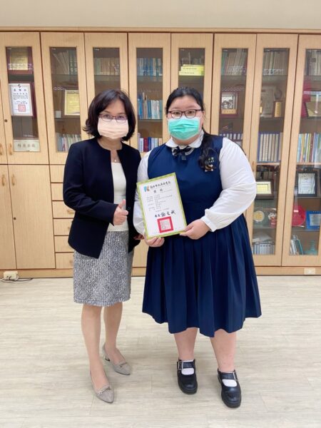 於國語演說高中組獲得第六名的張簡雪妙同學,則是第一次參加校外的國語演說競賽,在前幾名幾乎都被普通高中學生佔據的情況下,雪妙雖然身為一名高職學生,依然初試啼聲、一鳴驚人。就讀三信家商廣告設計科三年級的雪妙自六月開始投入學校的集訓,臺風穩健的她,一站上臺就吸引評審老師的目光。雪妙特別感謝指導老師范相惠老師,犧牲自己的時間,利用暑假為她進行訓練,藉由一週至少兩個主題的練習,使她熟悉各種可能出現的題型,果然在比賽時,便抽到了自己所擅長的題目,因此奪下好成績,為自己也為校爭光。