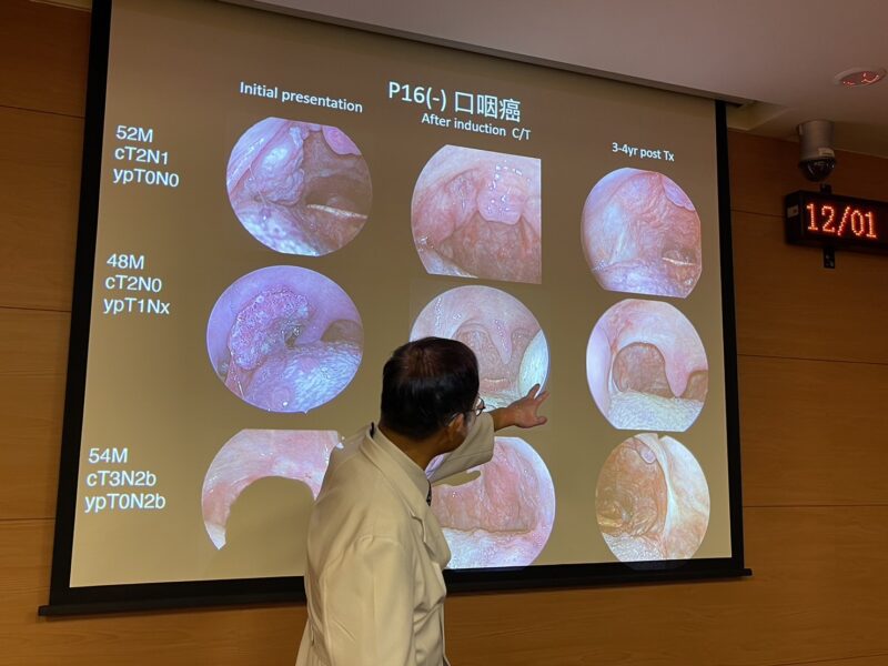 由人類乳突病毒感染導致之口咽癌對放射線照射和化學治療反應相對較佳,因此世界各地無不積極針對因人類乳突病毒感染引起之口咽癌病患嘗試各種放射線降階療法,以期降低治療後的後遺症及改善存活者之生活品質。本院過去4年半運用精準醫學的概念,將約近50名口咽扁桃腺癌病患不分是否為病毒感染所引起,先行接受引導式化學治療,篩選出適合病患,僅接受經口的口咽切除術或達文西口咽切除術加上頸部淋巴廓清術等手術治療。根據手術後獲得的病理資料對患者進行風險分層,並據以決定是否需要進行額外治療。我們治療的病患不僅存活率高,其中也僅有少數人需要追加較小照射劑量及範圍的術後放射線治療,大幅讓病患們免於承受同步化放療導致之終生後遺症。