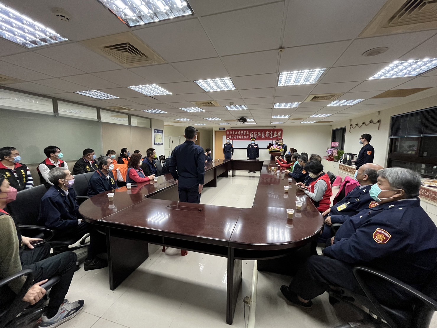 新北市政府警察局土城分局於今(16)日辦理金城派出所新任所長布達典禮,由分局長陳朝新親臨派出所主持典禮,並邀請派出所轄內民意代表、多位里長、協勤民力幹部、警友會幹部、志工媽媽及地方士紳等各界貴賓到場觀禮及給予新任所長祝福,場面溫馨熱鬧。