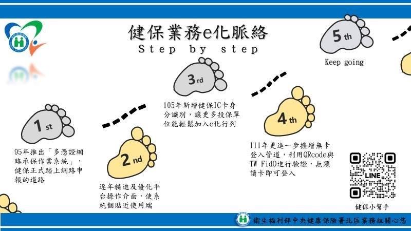 張温温組長進一步說明,為便利公司承辦人能透過網路辦理各項健保業務,健保署在95年即推動「多憑證網路承保作業系統」,於105年起增加可使用健保卡登入,為提供更多元登入管道,今年起再新增QR Code與TW FidO驗證方式,免插卡即可登入,即使外出亦可以行動裝置E手掌握。