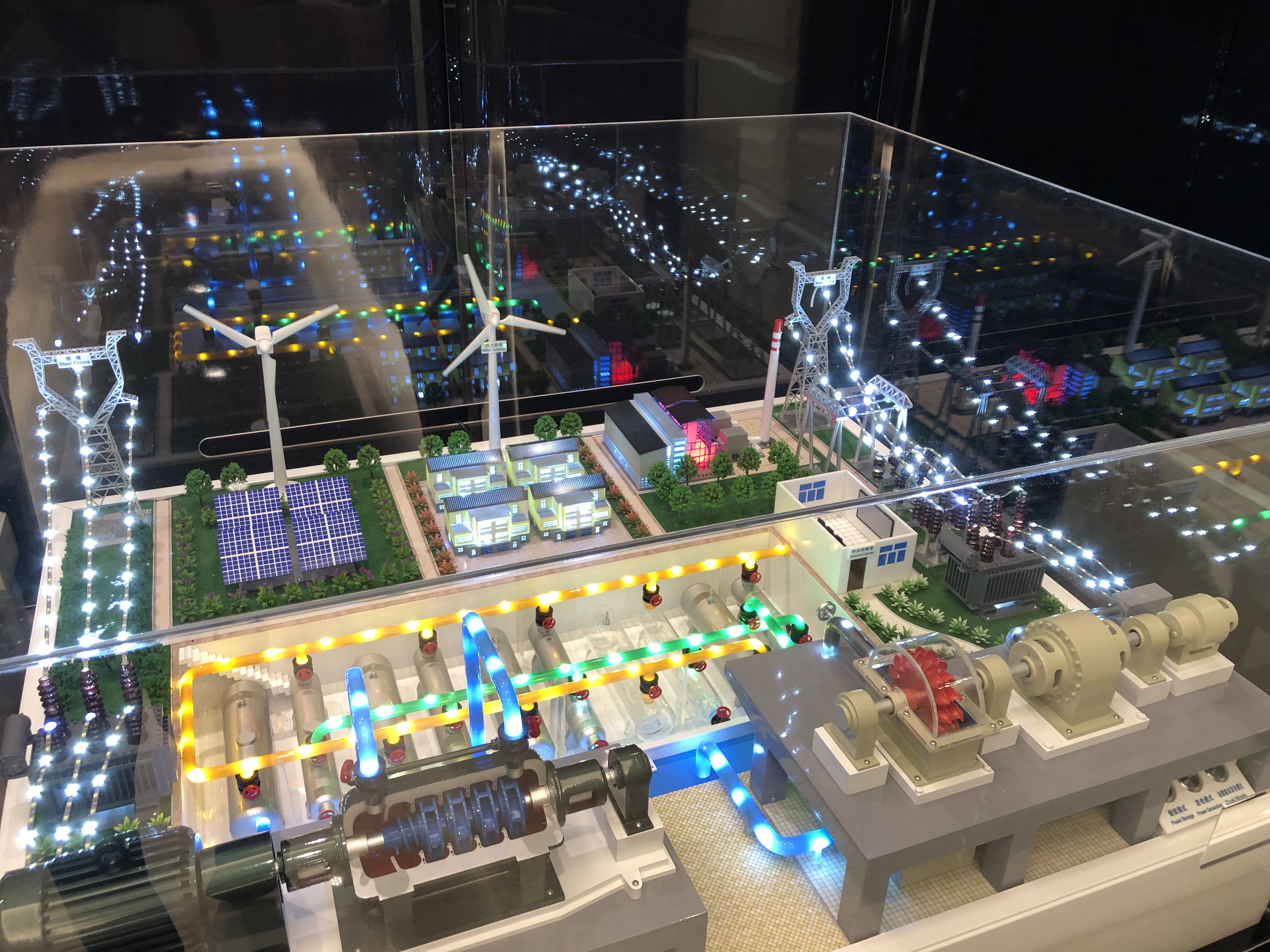 ▼圖說:丁廉君特別做了一套Power 8模型,展示發電儲能功能,系統左邊是儲能過程,右邊是水力發電過程。中間那排的凹槽處就是設置空氣罐與水罐的地方。(圖/記者李錦奇攝)