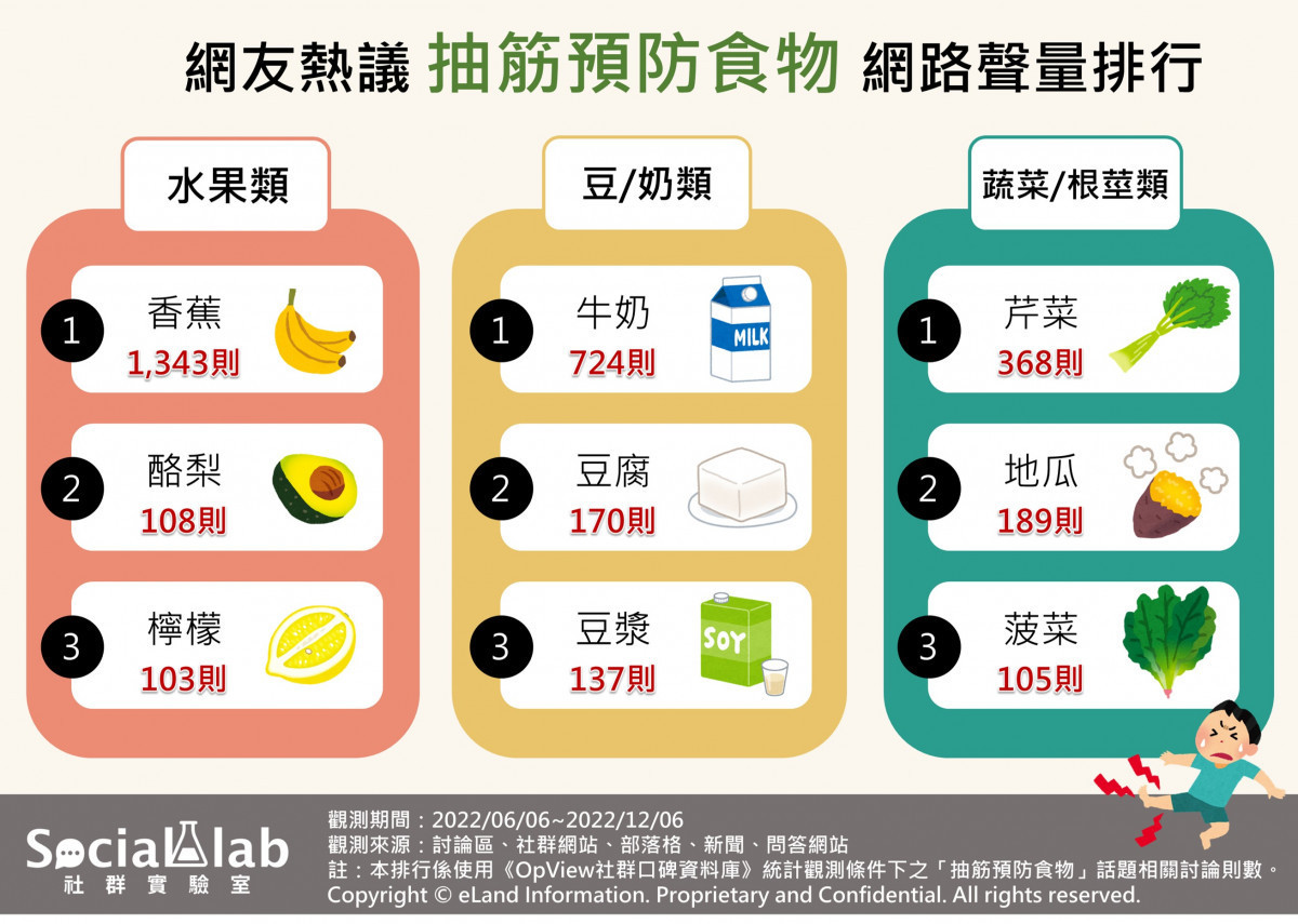 《Social Lab社群實驗室》本次透過《OpView社群口碑資料庫》追蹤半年網友熱議的「抽筋預防食物」相關話題,帶您了解有關網友推薦的抽筋預防食物有哪些。